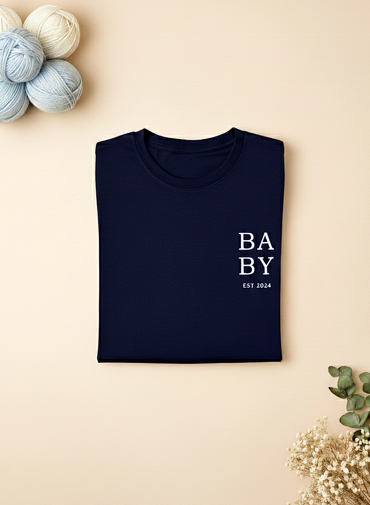 Este diseño se personaliza con el año de nacimiento, creando una camiseta única, llena de ternura y estilo.