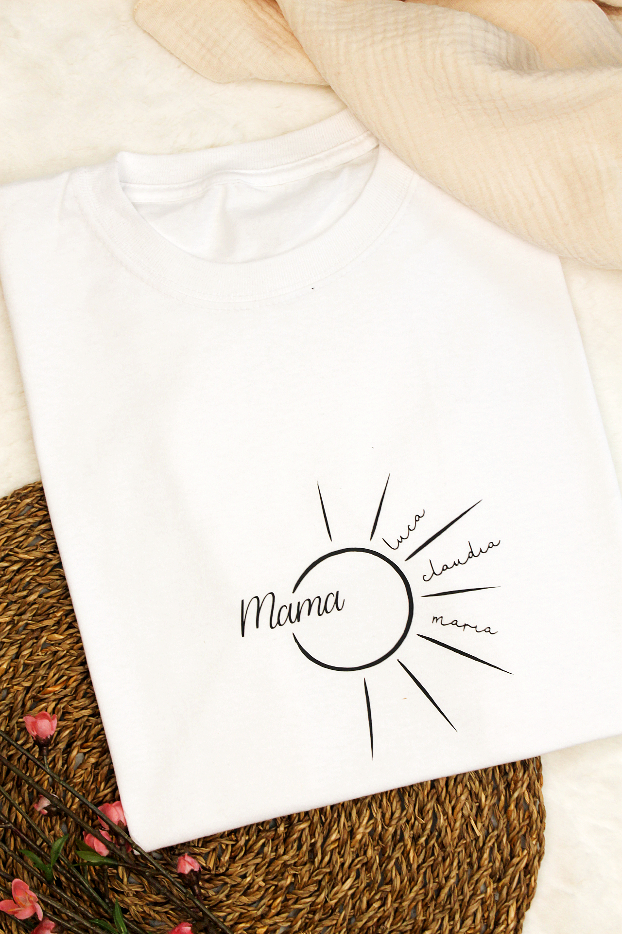 Camiseta personalizada para mamá con los nombres de sus peques, un regalo original y lleno de cariño.