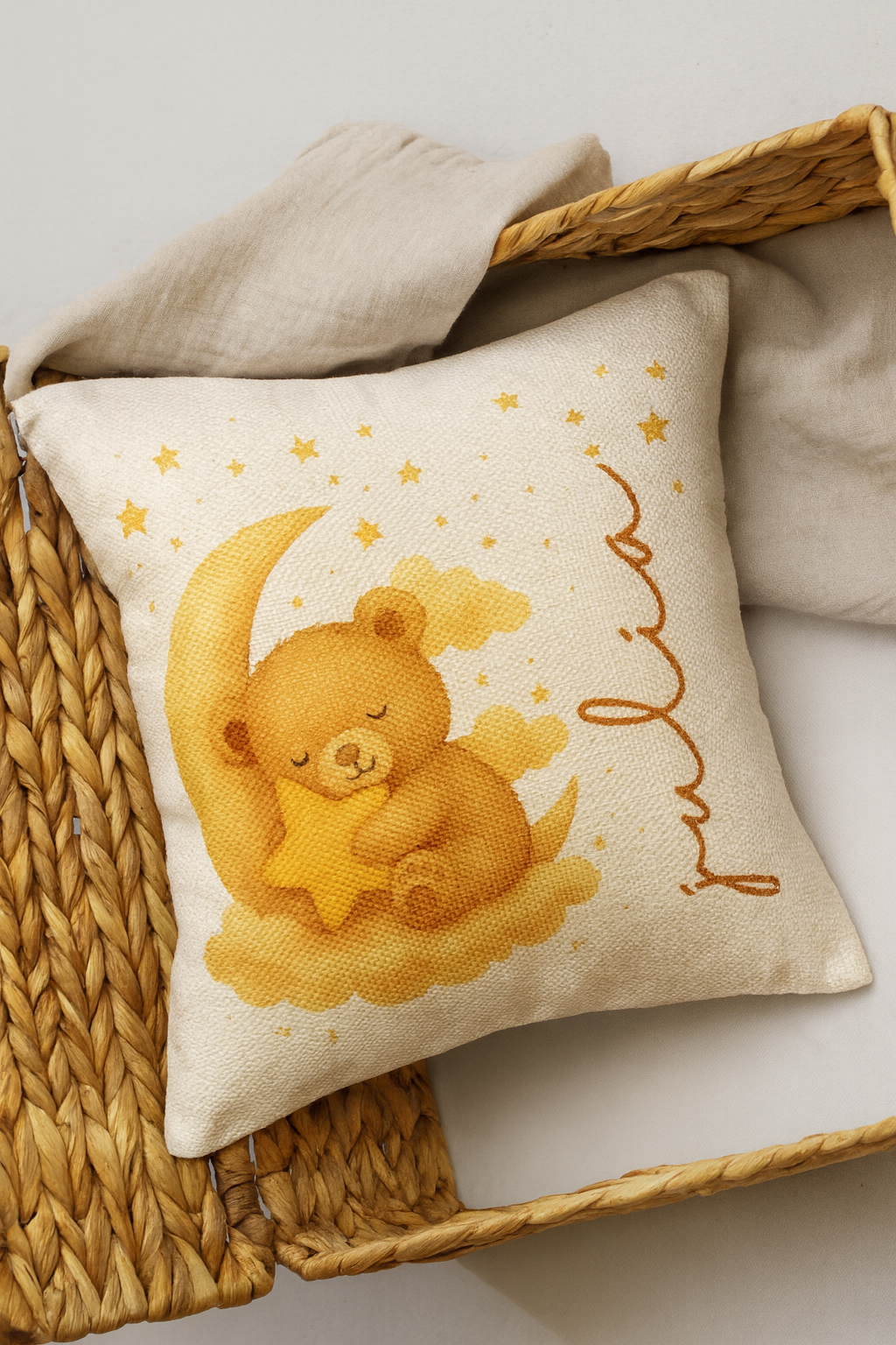 Dale un toque único y acogedor a la habitación de tu peque con nuestro mini cojín de lino personalizado.