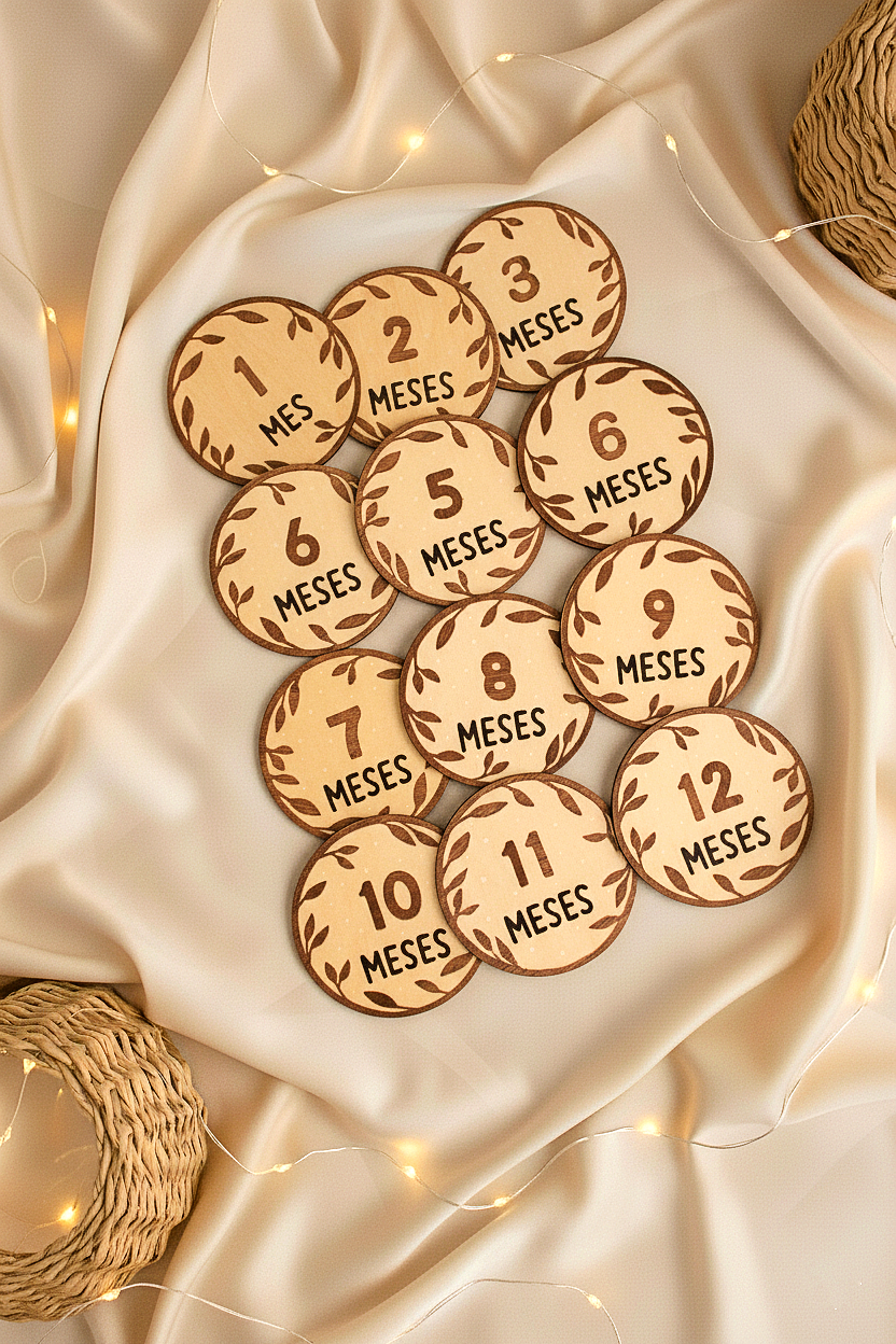 Celebra cada mes de su primer año con nuestras placas “cumple mes” de madera.