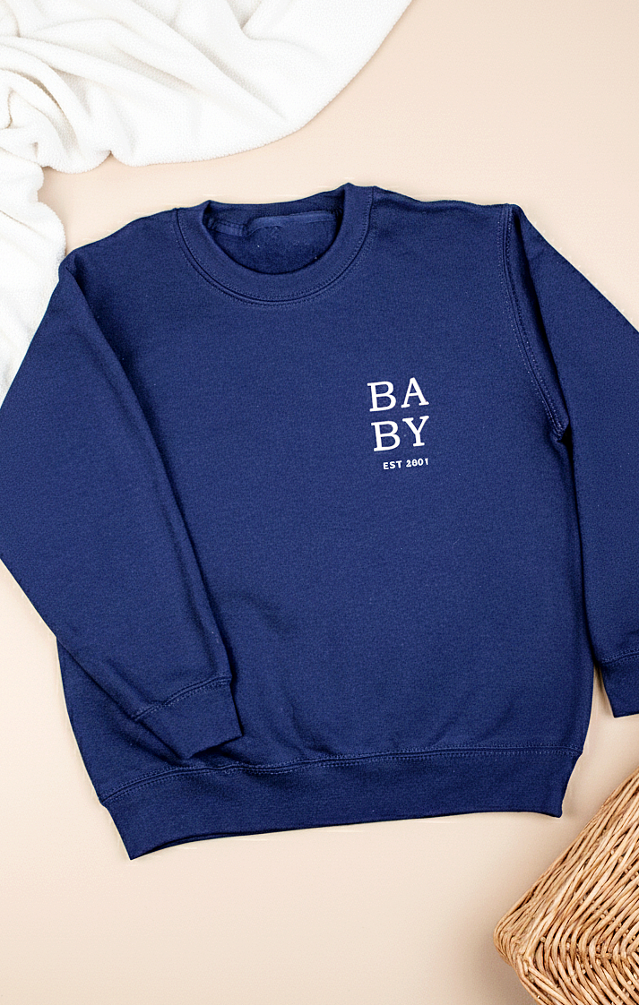 Este diseño se personaliza con el año de nacimiento, creando una sudadera única, llena de ternura y estilo.