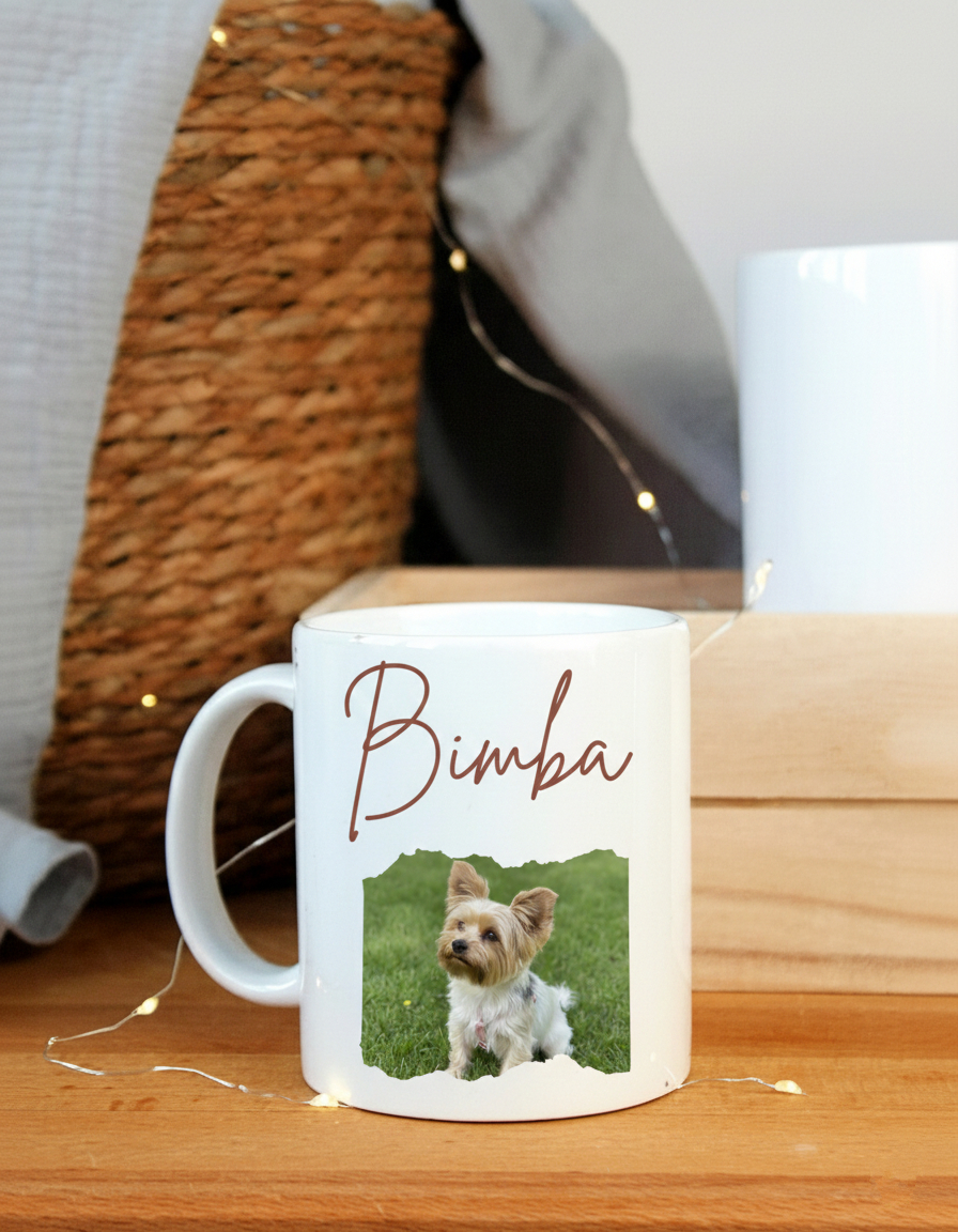 Taza personalizada con el nombre y foto de tu mascota, ideal para amantes de los animales que quieren un detalle único y especial.
